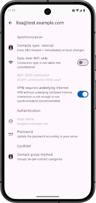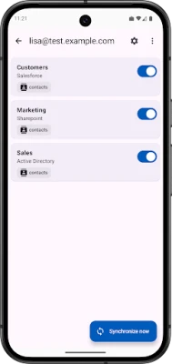 The PeopleSync Client app is an Android CardDAV client for businesses. The app synchronizes address lists and contacts from the messageconcept PeopleSync server software.