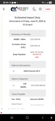 Auto Duty Checker is a third-party tool designed to help users estimate customs duties, taxes, and related fees associated with importing vehicles into Ghana.