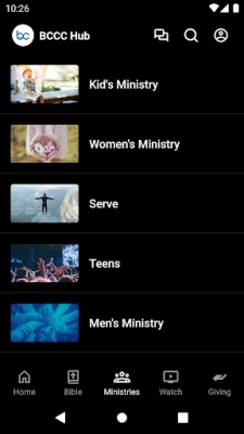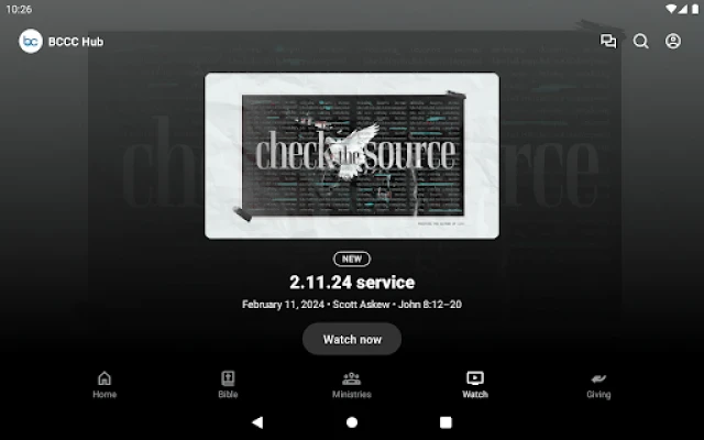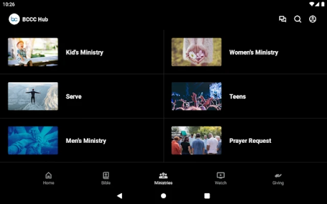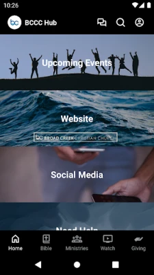 Our BCCC Hub features upcoming events, including ways to register, livestream our services or watch past services, read the Bible, and avenues for giving in the app.