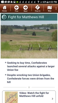 Click on our various "virtual signs" to access a wealth of information related to the very spot where you are standing. Onboard historian videos, audio accounts of soldiers from the battle, animated maps, photos, orders of battle, chronologies, key facts, and more are just a click away. Our detailed maps allow you to locate just where certain Union and Confederate units were during different phases of the battle. Never has so much valuable historical information been made available in such a portable device.