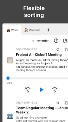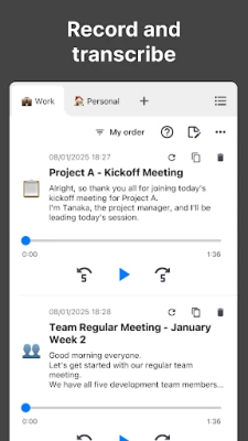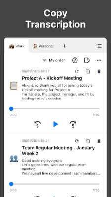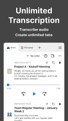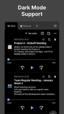 Unlimited transcription, unlimited tab management, versatile sorting options, dark and light mode switching, notifications, and biometric authentication all included.