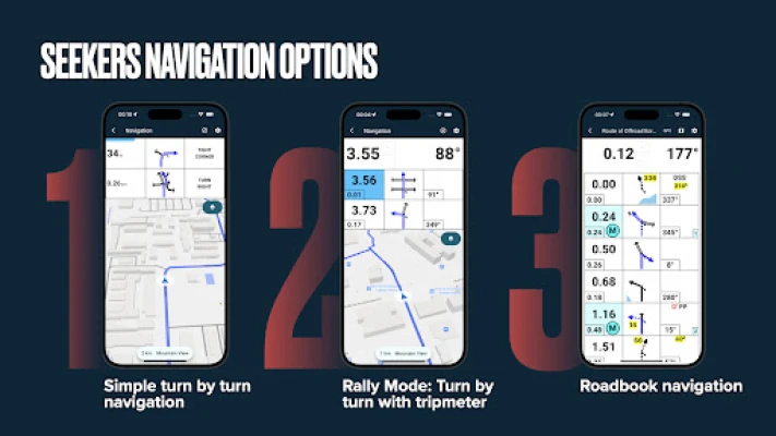 Navigate like riding a rally. Navigate tracks, generate roadbooks, navigate by roadbook and odometer, share tracks and places, plan your routes, record your track, create groups with your friends and organize your next trip. All of these is Seekers, always seeking for the next adventure.