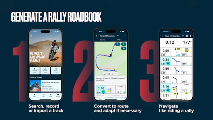 - Rally roadbook (FIA / FIM like roadbook) navigation for nearly all GPX tracks