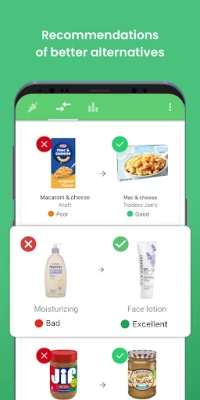 For any product with a negative grade, Yuka will recommend in total independence a similar product that's better for your health as an alternative.